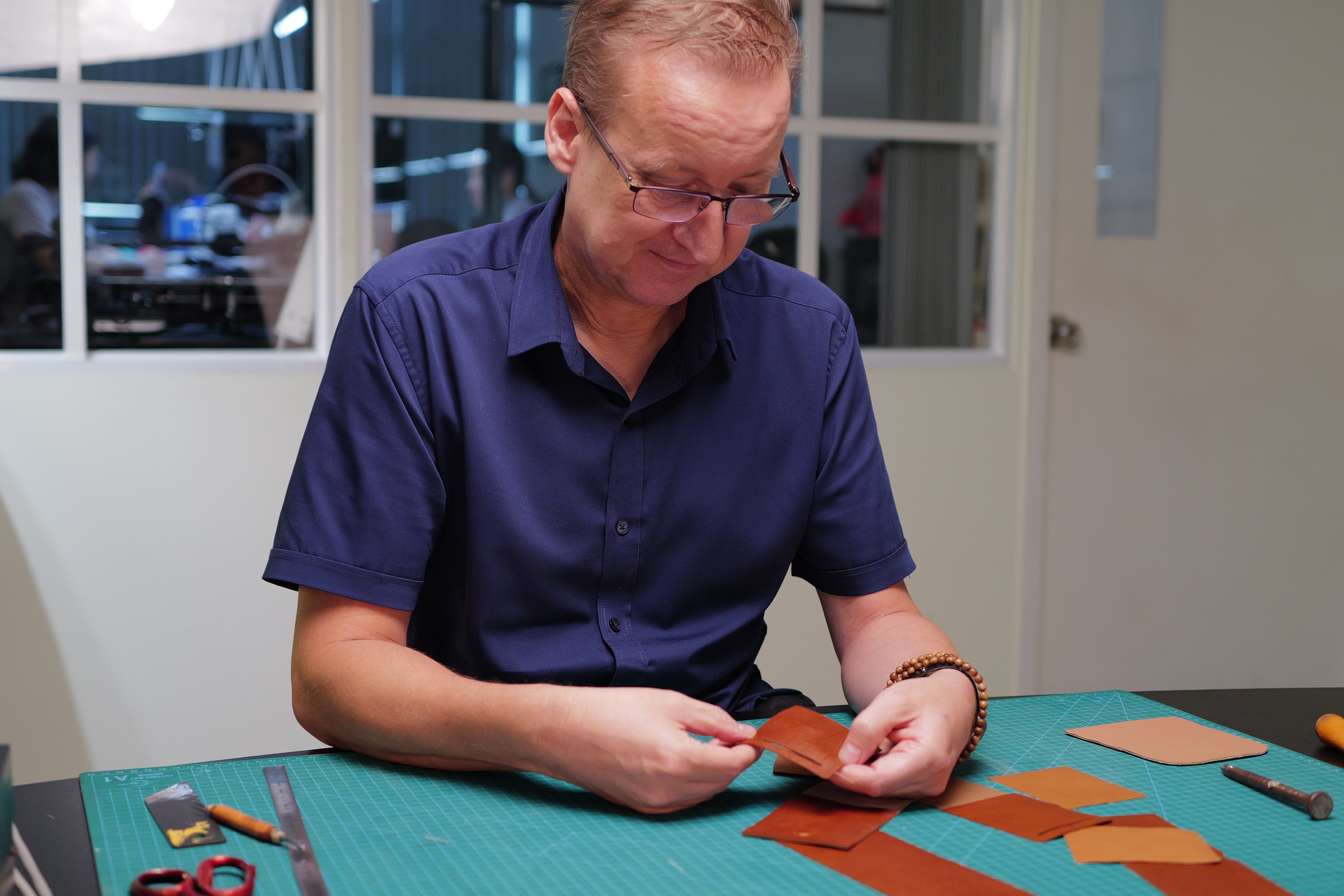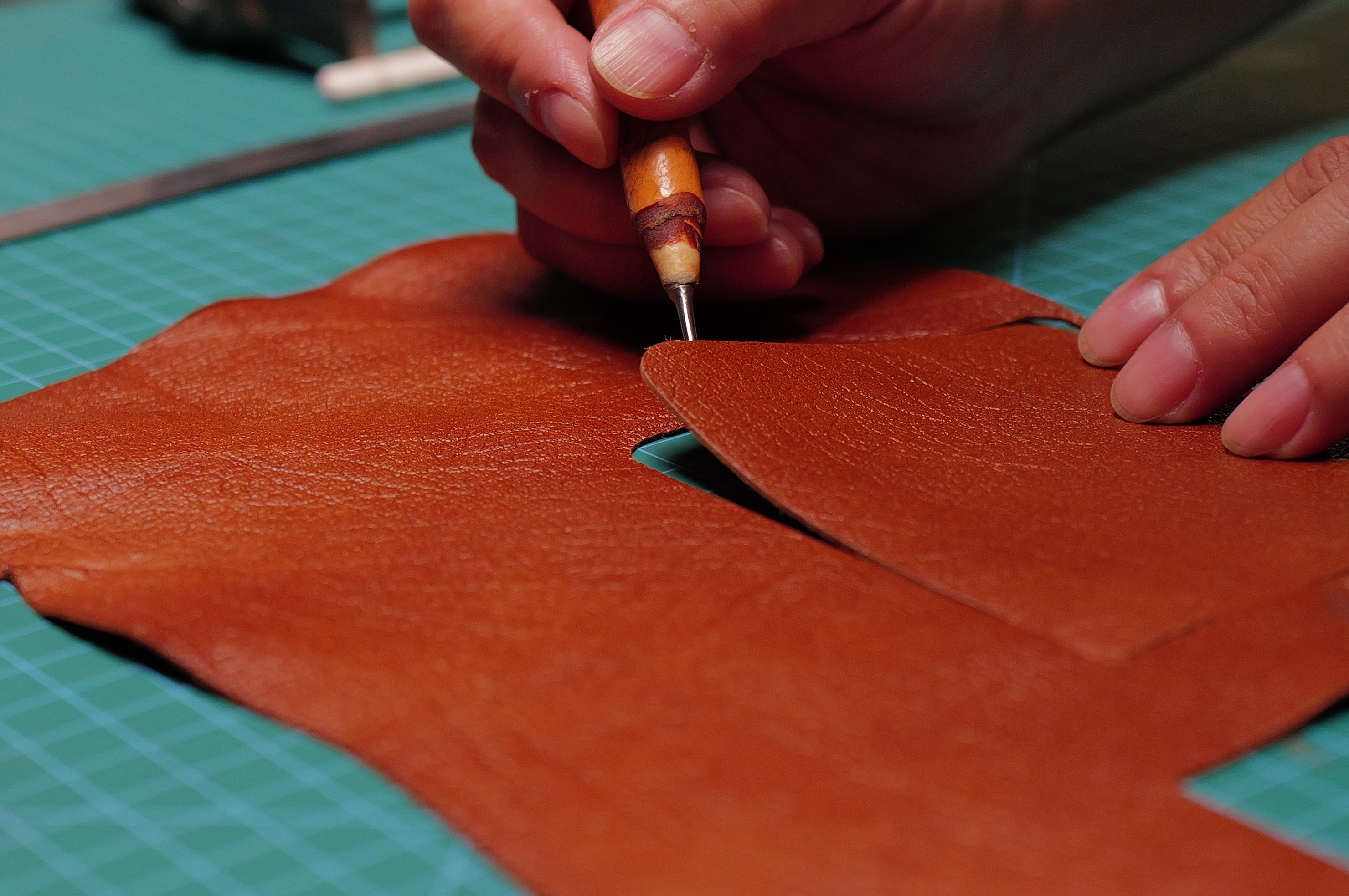 Edges begin with a clean cut. We use dies for repeat precision and a blade for delicate curves. Skiving thins folds and seams so the profile stays slim while strength remains where it is needed most.