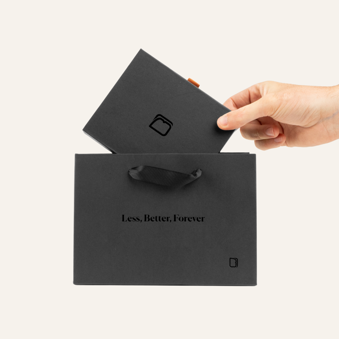 Personalise The Minimalist Set with complimentary monogramming on both pieces. Presented in refined giftable packaging with a matching gift bag (included), the set arrives complete and ready to gift.